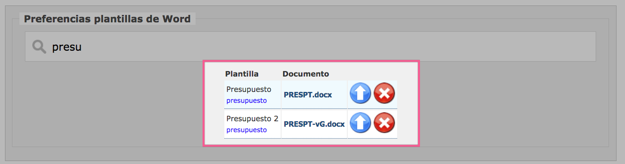 Para poder utilizar esta opción dispones en el área de plantillas de word de dos contenedores para subir cada versión: