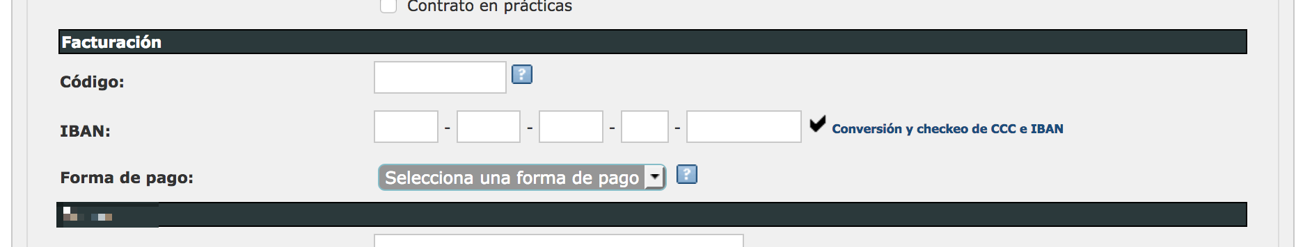 Concretamente el cambio que hemos hecho ha sido agrupar en la sección de facturación de la ficha del usuario todos los datos relacionados con el área de facturación:
