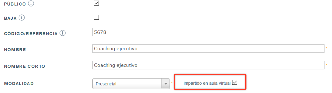 Sería muy práctico que apareciese una forma de indicar en la ficha del curso que se va a impartir mediante Aula Virtual.