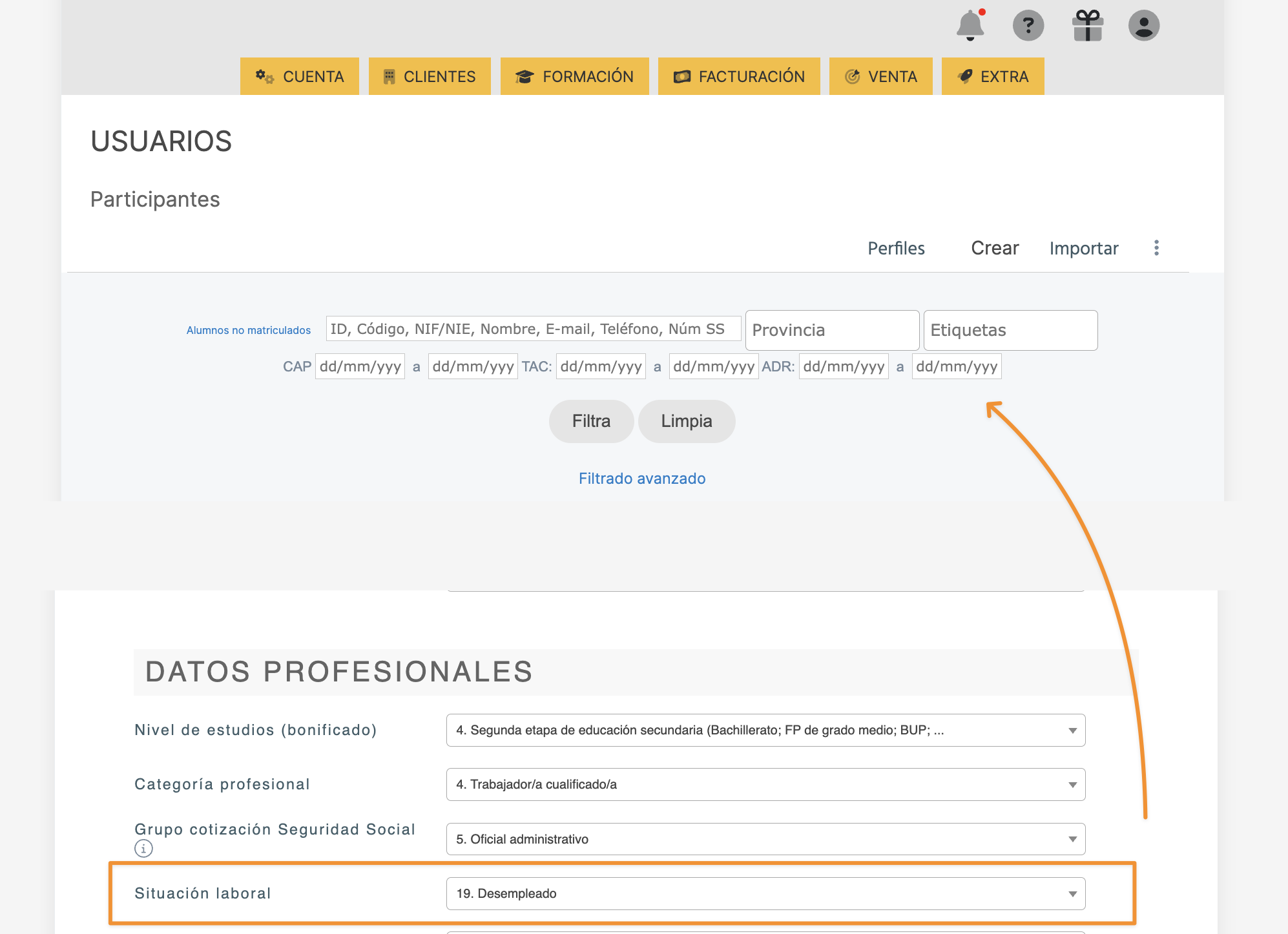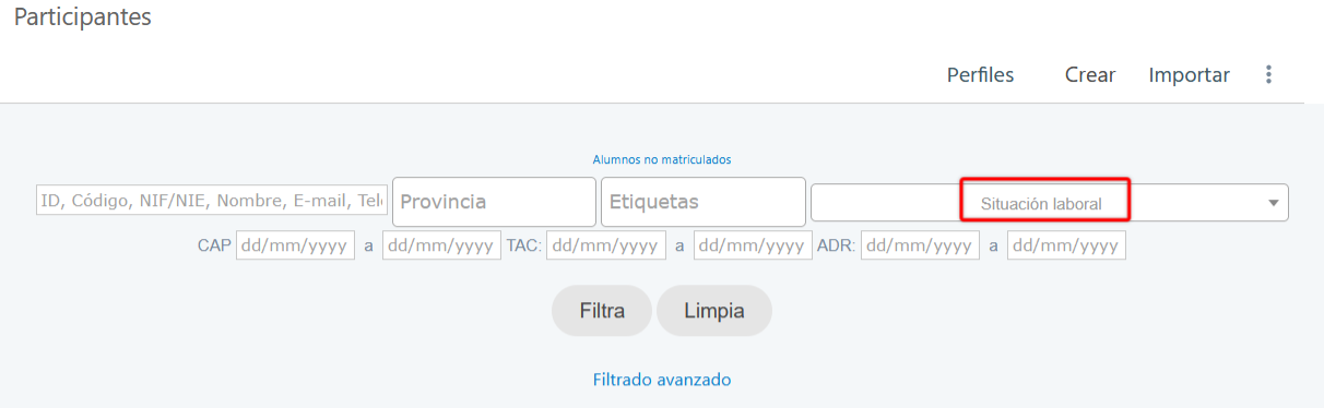 Necesitamos obtener un informe desde usuarios/participantes filtrado por situación laboral: desempleado.